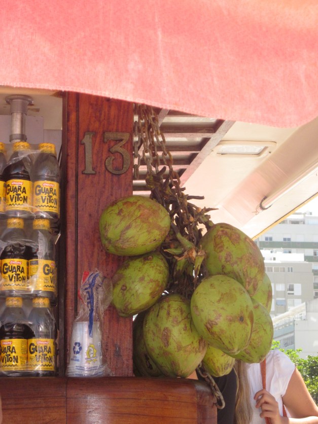 I’m actually getting to the point of this post which is one of my fondest memories from Brazil…Agua de Coco!!! A young, green coconut. Yep, a delightful green coconut which is macheted open right before your eyes! A straw is then submerged into the depths of the thirst-quenching pureness of sweet, slightly salty coconut water. The bulbous green coconut you hold in the palm of your hand, while gazing out across the sand to the beckoning waves of the Atlantic. The straw touches your lips, you take a sip and right then, there could be no wrong in the world ! Okay, okay so maybe it’s not that good but it’s pretty darn close! Don’t even dare compare it to the Tetra Pak or plastic bottled coconut water because sadly, it’s just not the same.
