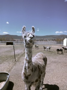 On our way out we met up with the two llamas Otis and Elvis, Elvis has a lame foot and Otis well, when you look it him you just want to laugh because he is ridiculous in a good way– a lopsided grin and floofed fur atop his head: