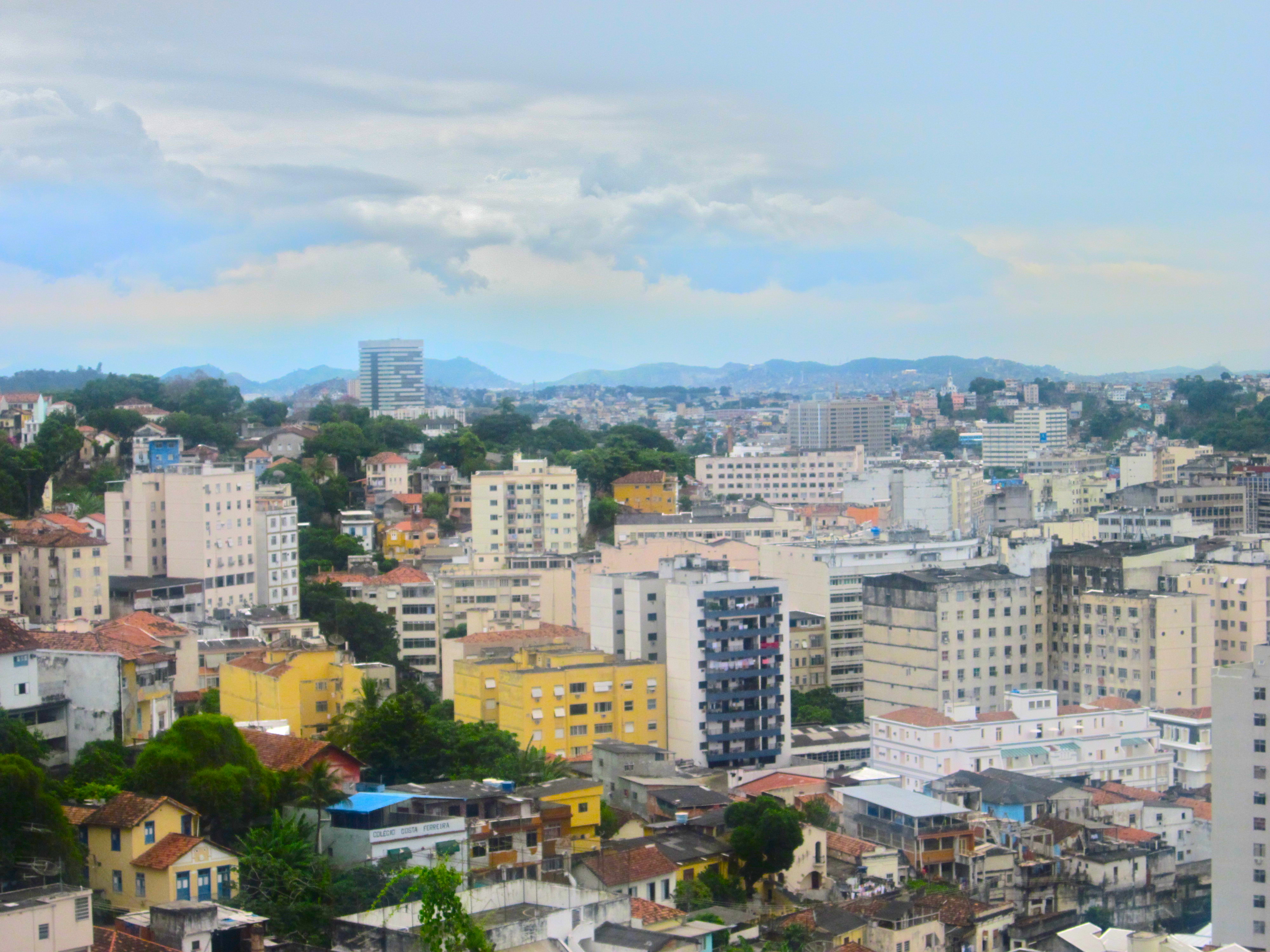 If you are planning a ride on the bodinho let me share with you a piece of advice, if the trolley appears full yet the conductor insists that you squeeze aboard be prepared! It was an exhilarating ride filled with white knuckled grasps to whatever part of the trolley that could be held, entwined with other white knuckled fists. There were no safety precautions or enclosures, simply a ride filled with fresh air at a brisk and winding pace. The sounds of street traffic, motorcycles packed with fruits or other necessities buzzing by, epic views of the city and street art all filled the time as the bodinho made its bumpy ascent to Santa Teresa.